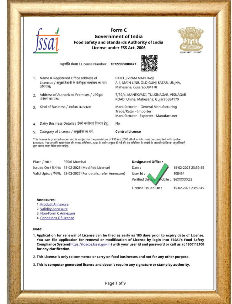 FSSAI CERTIFICATE