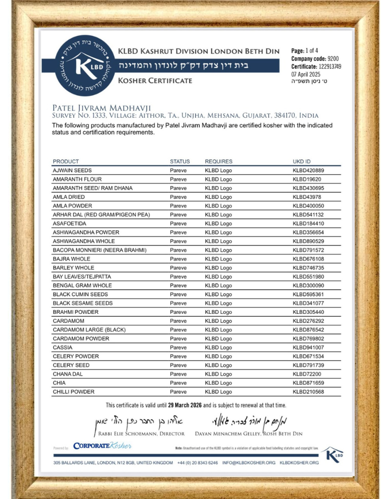KOSHER CERTIFICATE