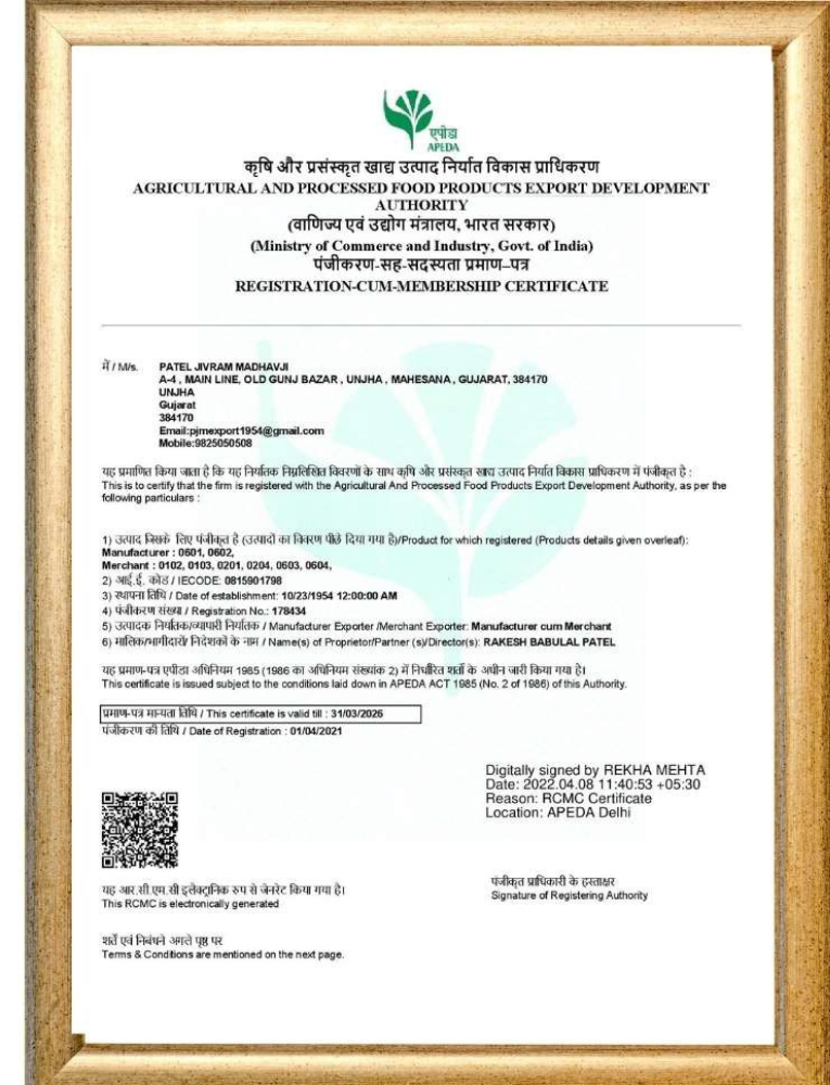 RCMC APEDA CERTIFICATE